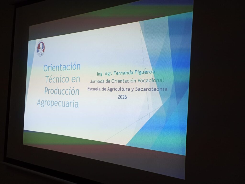 El viernes 20 de febrero se llevó a cabo en el SUM de la Escuela de Agricultura y Sacarotecnia una actividad de orientación vocacional destinada a los estudiantes que ingresan a 4º año, en el horario de 9:30 a 11:30 hs.